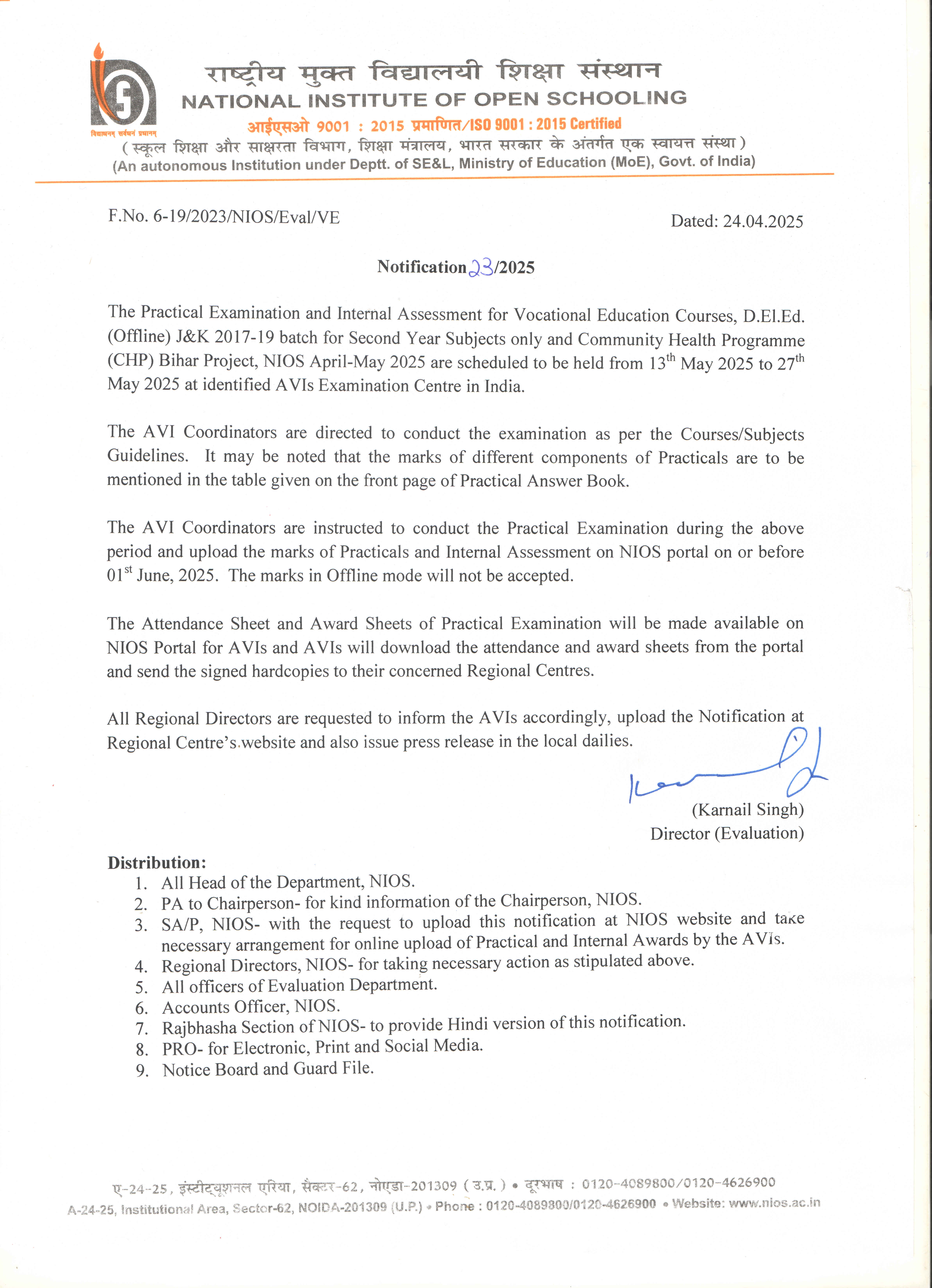 Notification 23/2025 regarding practical examination of vocational examinations May 2025