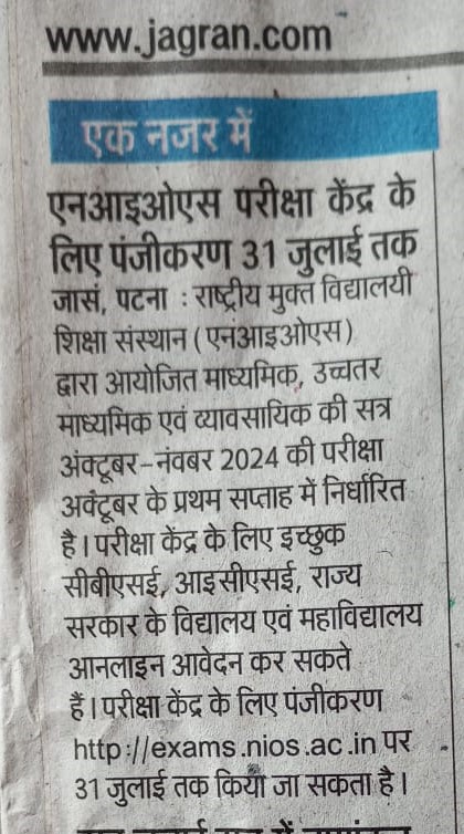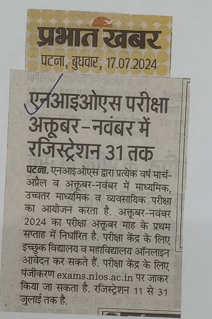 To fill the NIOS examinations centre acceptance form for October 2024 public examinations, please click here....